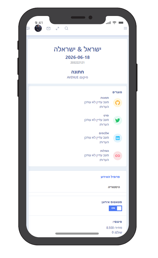 תוכלו להתאים את MYEVENT CRM לצרכי העסק שלכם, שמרו את כל המידע על העסק במקום אחד.