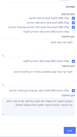 בעזרת מערכת CRM שלנו תוכלו לשלוח ללקוחות תזכורות והודעות מותאמות אישית, להפיק מסמכים והסכמים שיצרתם בעצמכם באמצעות התוכנה.